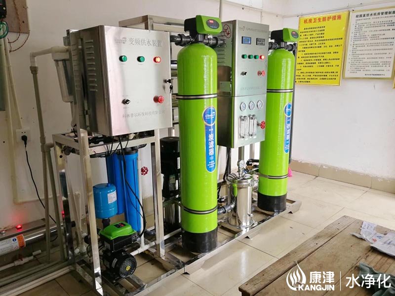 項目名稱:來賓鳳凰中心校學生直飲水設備工程 設備名稱:0.5T反滲透純水設備 工藝流程:原水箱-原水泵-石英砂過濾器-活性炭過濾器-保安過濾器-變頻供水...