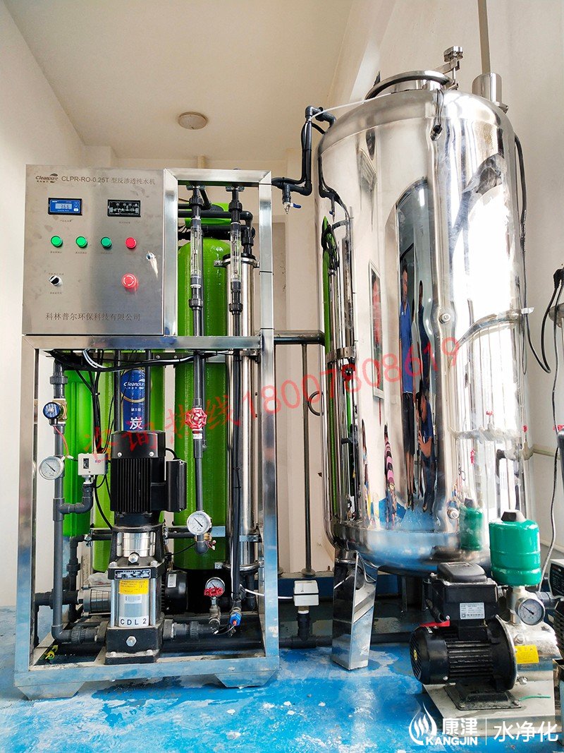 項目名稱:大三元火鍋0.25噸反滲透純凈水設備 設備名稱:0.25噸反滲透純凈水設備 工藝流程:原水箱-原水泵-石英砂過濾器-活性炭過濾器-精密過濾器-反滲透設備-凈水箱-變頻供水-各點用水...