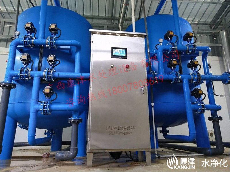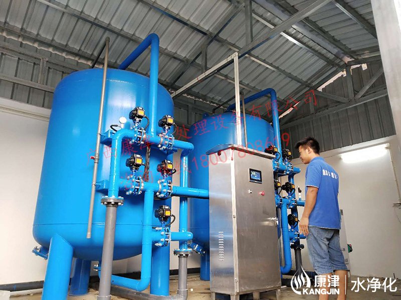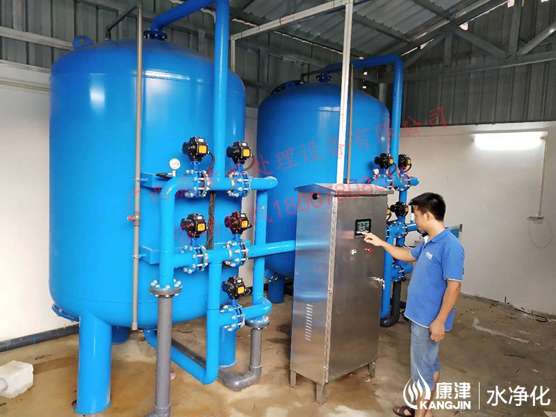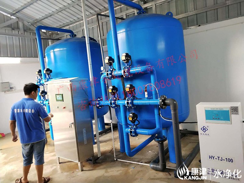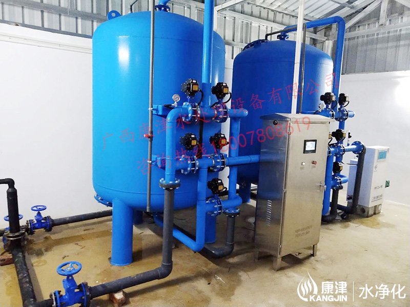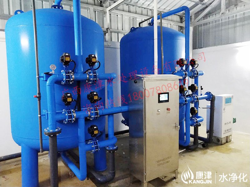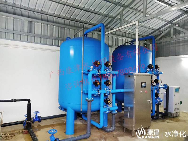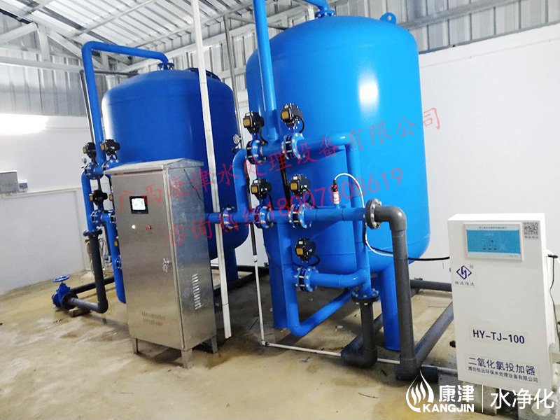 項目名稱:貴港市六吉地下水凈化工程 設備名稱:20噸壓力式凈水設備 工藝流程:地下水-石英砂過濾器-二氧化氯消毒-加壓泵-高位水塔 產品型號:KJ-DF-1500...
