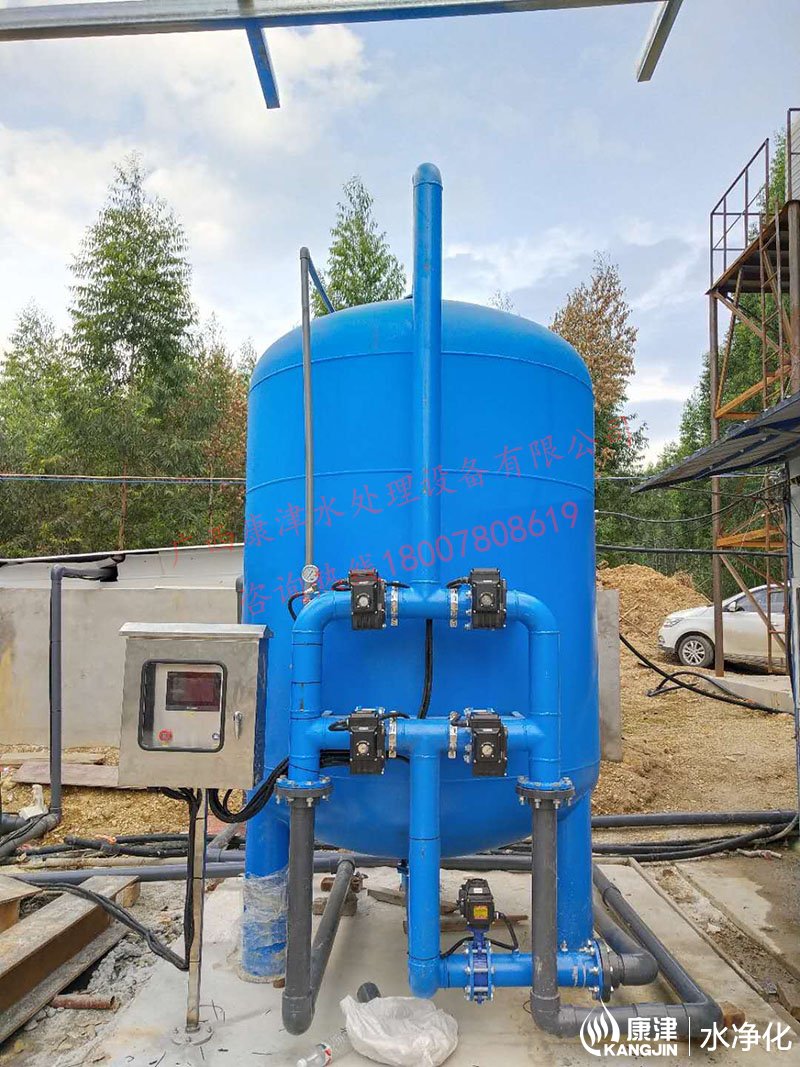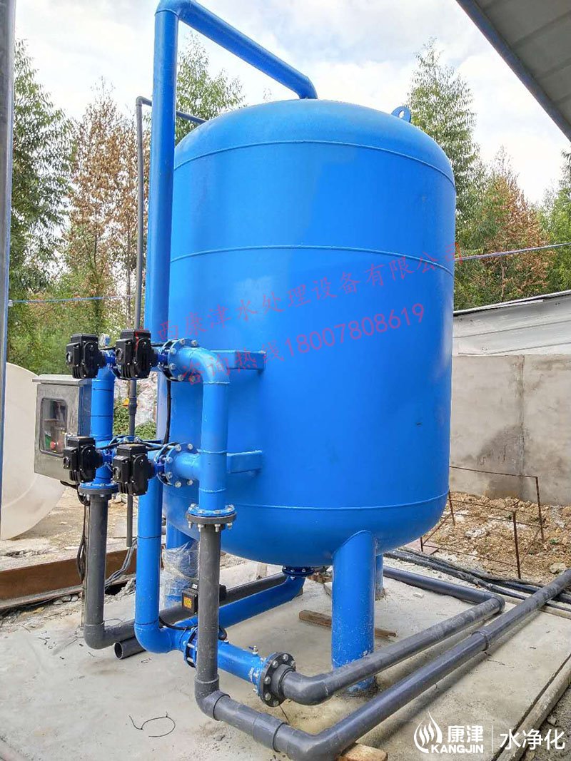 設備是壓力式的,其原理是當原水自上而下通過濾料時,水中懸浮物由于吸附和機械阻流作用被濾層表面截留下來;當水流進濾層中間時,由于濾料層中的砂粒排列的更緊密,使水中微粒有更多的機會與砂粒碰撞,于是水中凝絮物、懸浮物和砂粒表面相互粘附,水中雜質截留在濾料層中,從而得到澄清的水質。經過濾后的出水懸浮物可在3毫克/升以下。